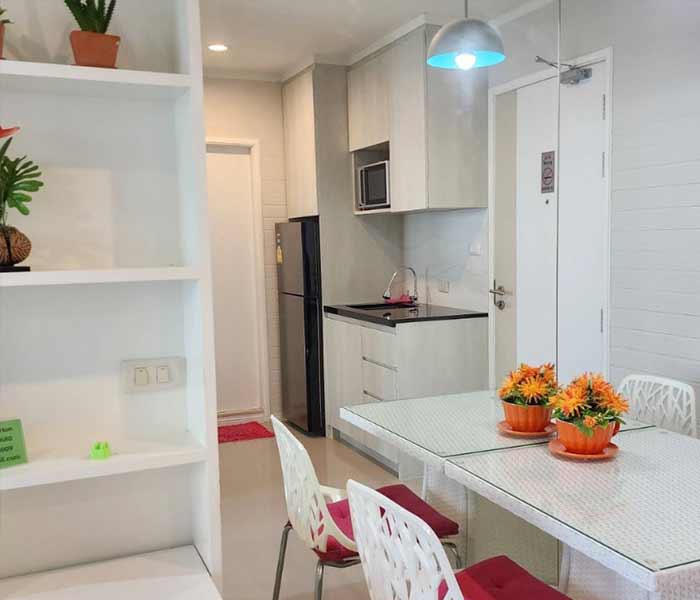Among the condos for rent is the Lumpini Park Beach ( 1BR19F). This 32sqm 1-bedroom condominium is located on the 19th floor of this prestigious complex. Fully equipped for your comfort, this flat offers a practical living environment where you can enjoy stunning sea views from your private balcony every day, providing an idyllic setting in which to relax and recharge your batteries.