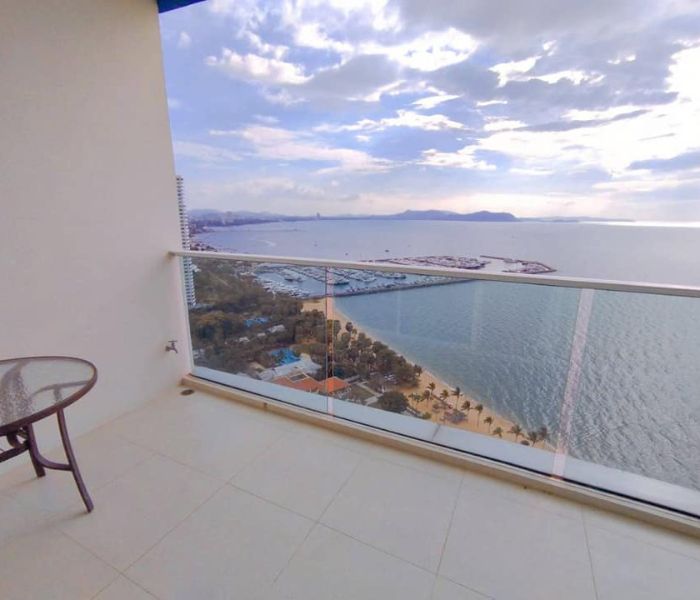 This 80 sqm 1-bedroom (1BR2210) condominium is nestled on the 22nd floor. Fully furnished, it offers a comfortable and functional living space. You can enjoy a large balcony while admiring the view of the na jomtien sea.